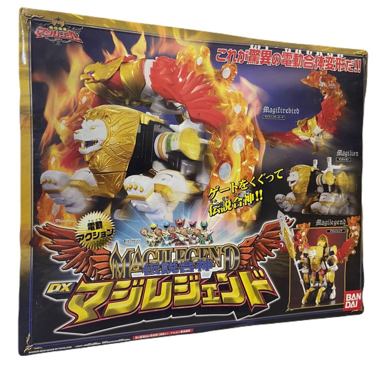 This premium DX‑class combining toy from the Mahou Sentai Magiranger series features the “Legend” formation — a powerful mecha fusion of the MagiPhoenix and MagiLion units. It delivers both display appeal and play value: bold metallic finishes, dramatic winged lion/bird chest elements and large‑scale proportions (approx‑ly 2.2 kg by one listing) make it a standout collector’s piece. The set is especially notable for its nostalgia factor (drawing on the 2005 Sentai series), combining complexity with bold heroic aesthetics, making it ideal for fans of the franchise and mecha aficionados alike.
