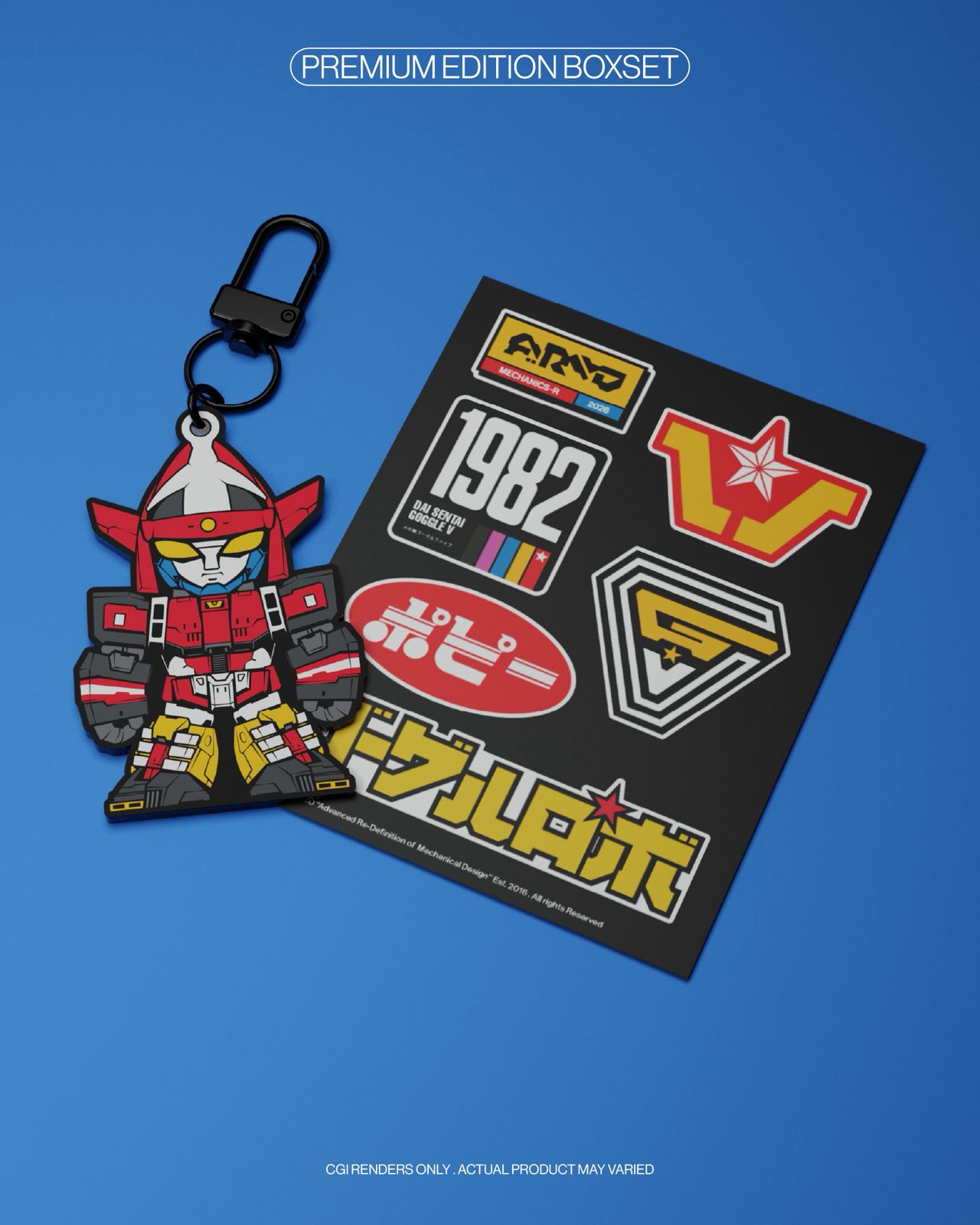 1 t-shirt, 1 keychain, 1 metallic sticker pack