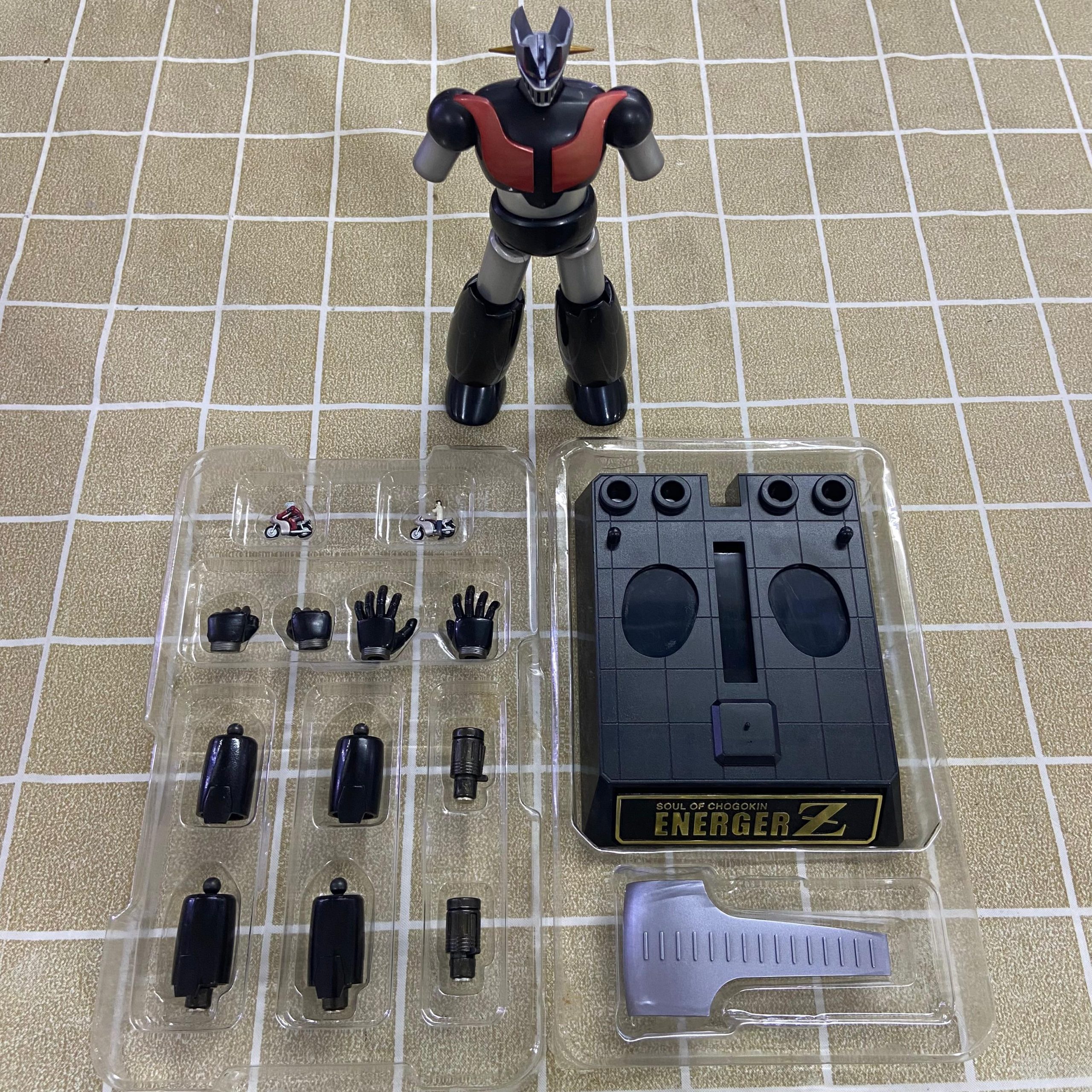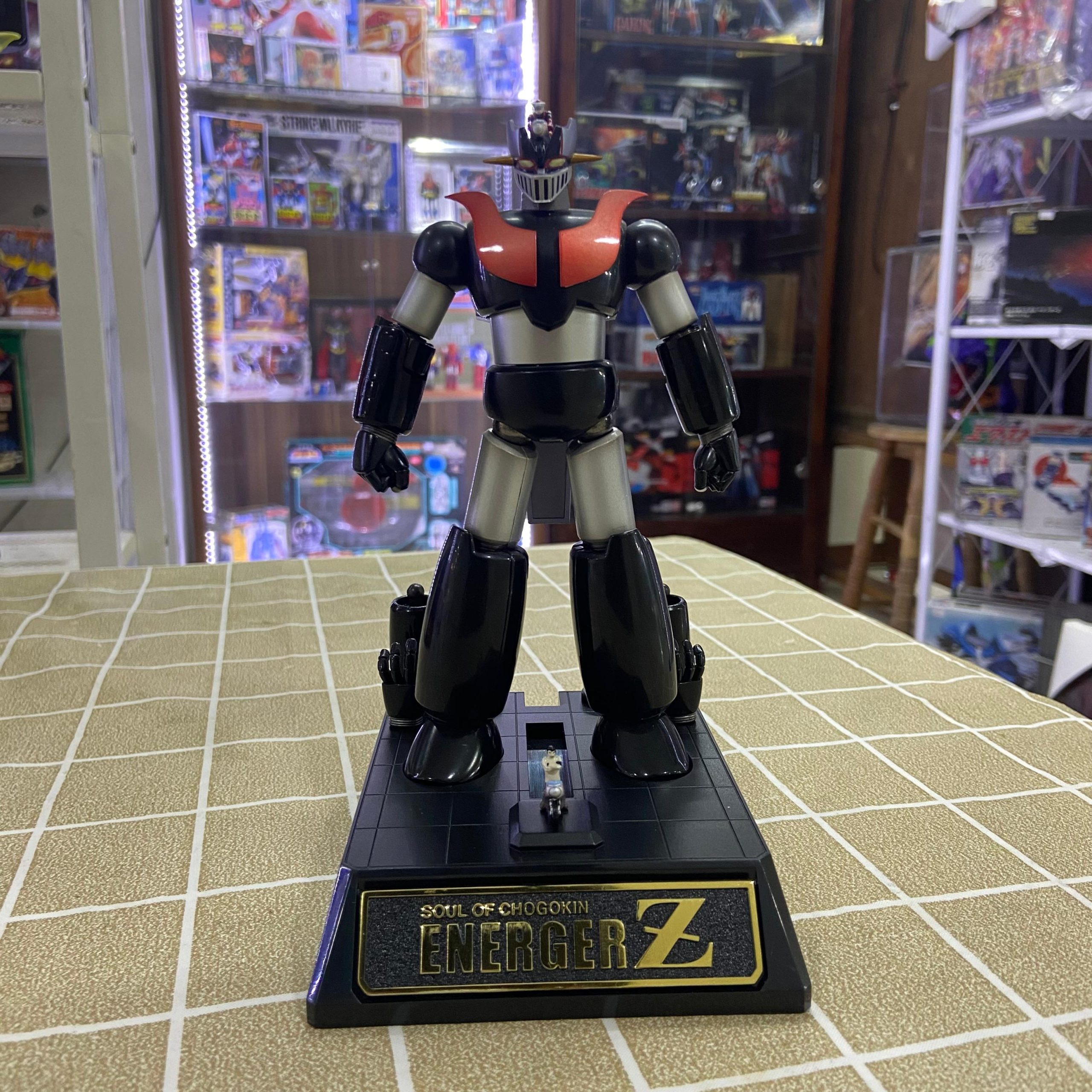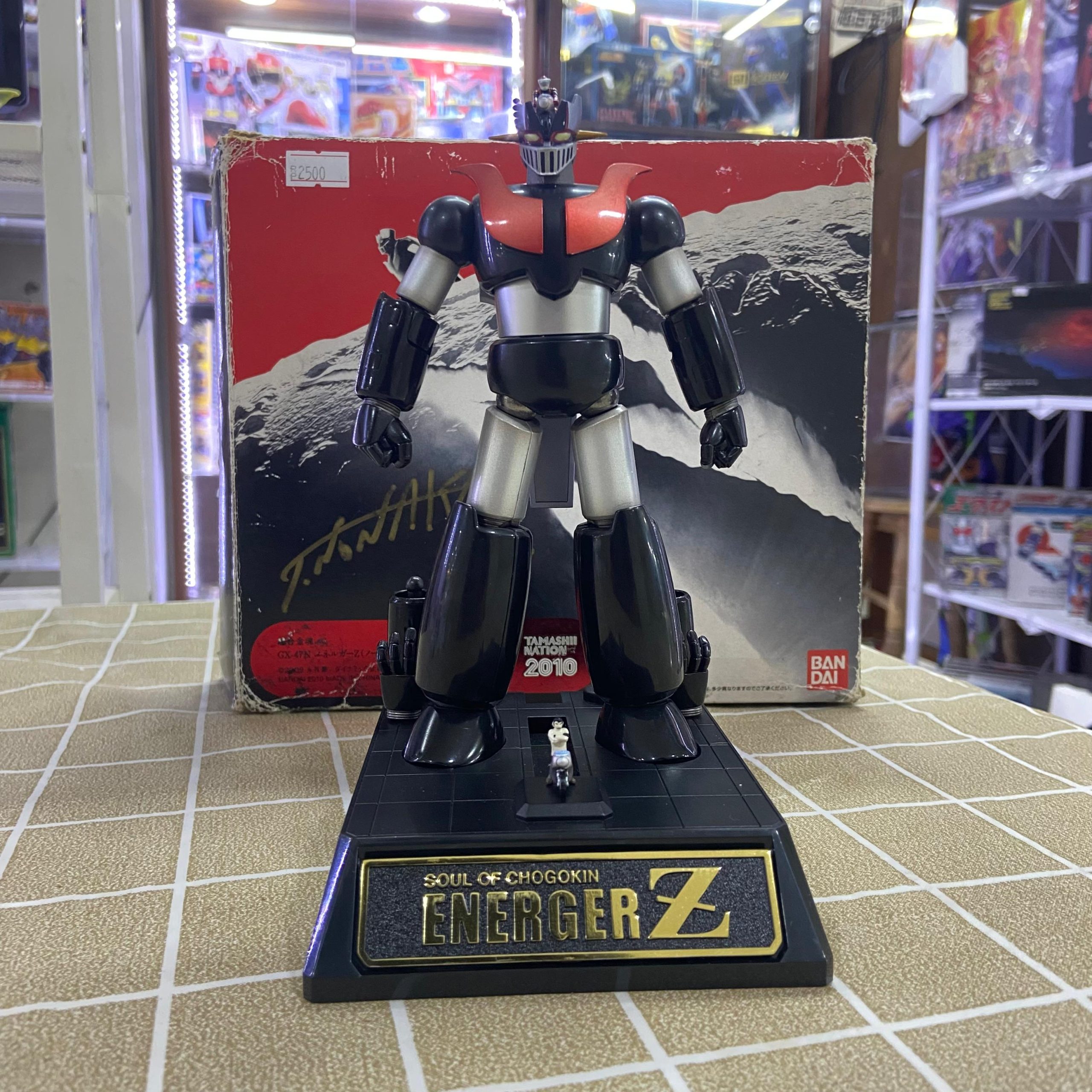 The Soul of Chogokin GX‑47N Energer Z “Normal Color Version” is a posable, high‐end collector figure released by Bandai in October 2010 as part of the Soul of Chogokin line. It depicts the Energer Z mecha in its standard color scheme from Mazinger Edition Z: The Impact!, with faithful coloring rather than a special or variant repaint. The figure stands approximately 16 cm tall and is built using a combination of materials including die‑cast zinc alloy (ZnDC), ABS plastic, PVC, and PC, which together offer a good balance of heft, durability, and detailed sculpting. It retains the articulation and features expected of SOC line figures—multiple joints for posing, replaceable parts, and a finish that highlights its mechanical details. Being a special version (Normal Color) tied to the Tamashii Nations Expo Autumn 2010, it carries collectible value beyond just the figure itself.