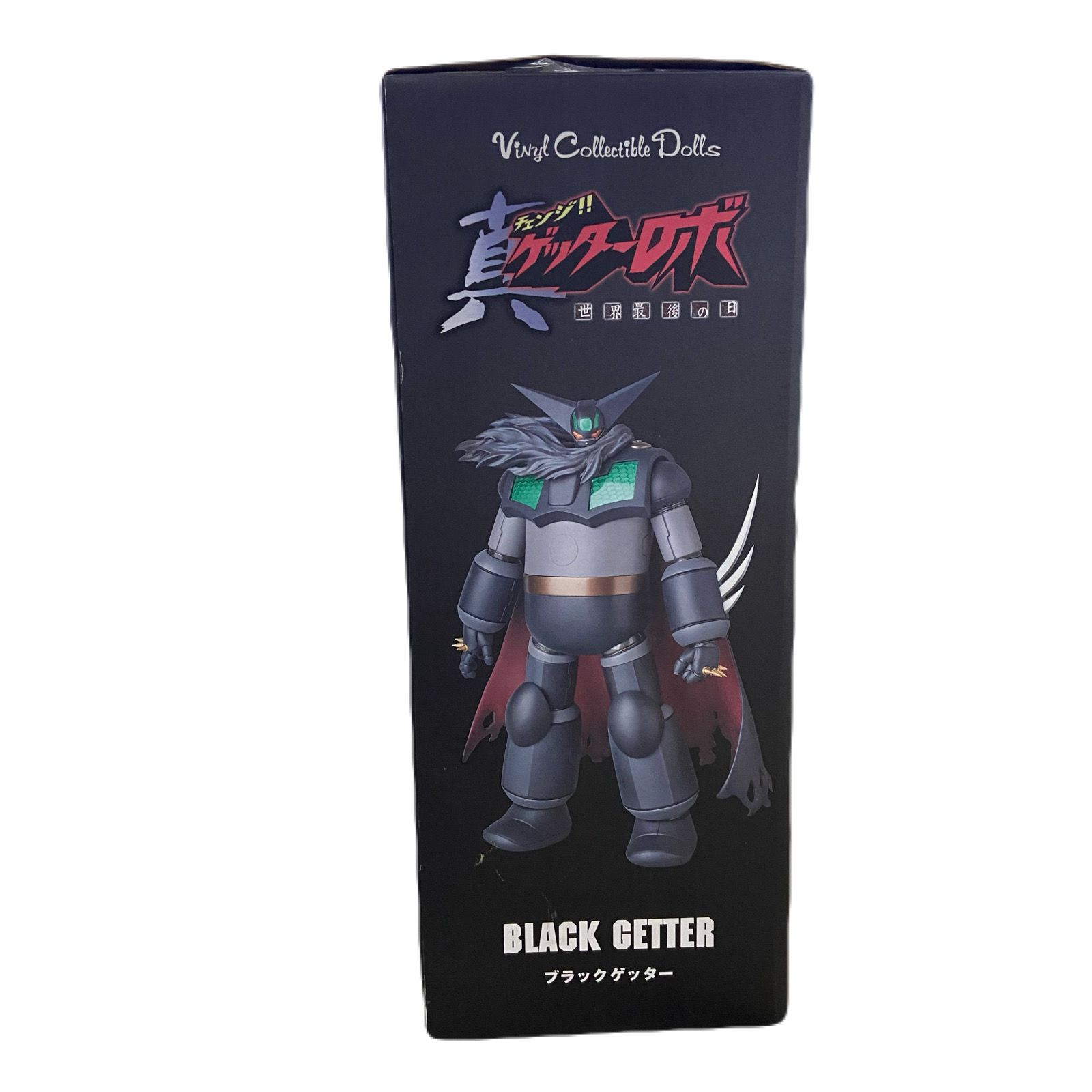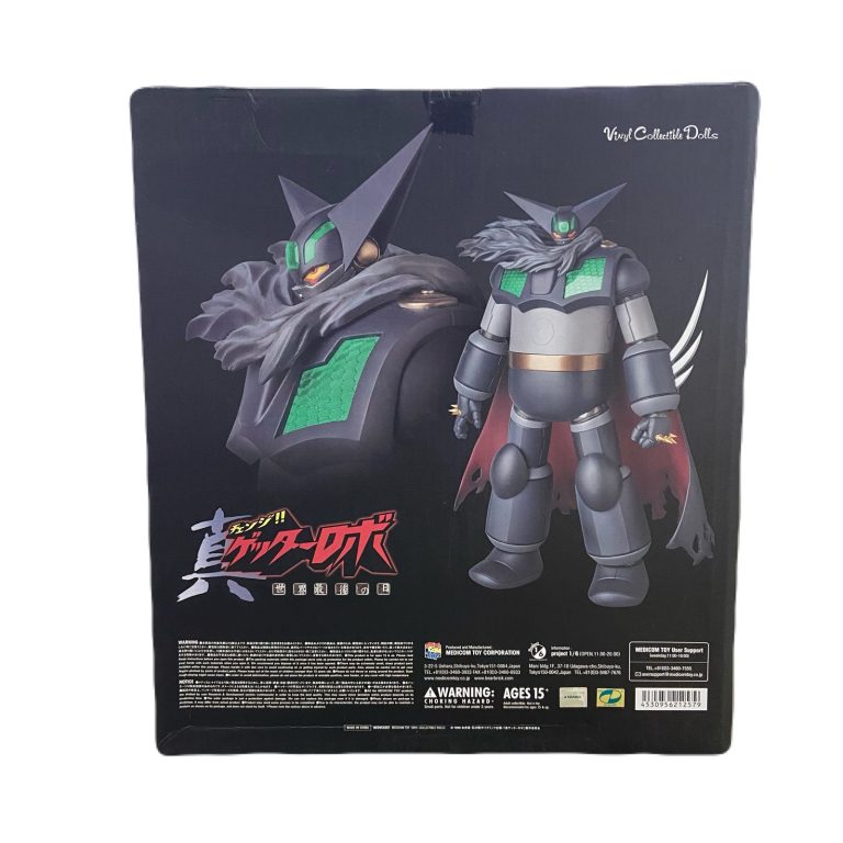 The Vinyl Collectible Dolls (VCD) Black Getter figure is a large-scale, soft vinyl collectible produced by Medicom Toy under their popular VCD line, known for faithfully reproducing iconic mecha designs. This particular figure, often designated as VCD No. 257, is based on the menacing, heavily-modified version of the Getter 1 known as the Black Getter, which appears in the Shin Getter Robo Armageddon OVA. Standing approximately 300 mm (11.8 inches) tall and sculpted by PERFECT-STUDIO, the figure captures the robot’s dark, rugged aesthetic with its all-black color scheme, distinctive PVC cloak that adds a dramatic flourish, and the use of clear parts in the chest to reveal the internal honeycomb details. Like other VCD figures, it prioritizes a stunning, static display sculpt over high articulation, featuring only a simple ball joint for the head, making it a desirable, limited-edition piece for dedicated Getter Robo and super robot collectors.